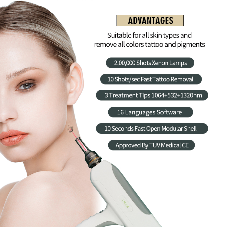 1. Q switch 1064 nm laser: the suitable for treatment is tattoos, eyebrow drawing, lip mark lines and eye mark lines.